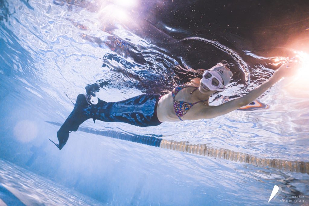 上課初期一直在正游卡關,在水中沒辦法放鬆肢體也很僵硬,後來在教練的指導下學會在水中的放鬆與休息方式才漸入佳境,開始能做一些與表演相關的動作。練習時水下攝影可以讓自己更清楚姿勢需要修正的地方,調整動作之後會發現變得更美更漂亮,也會得到滿滿的成就感!