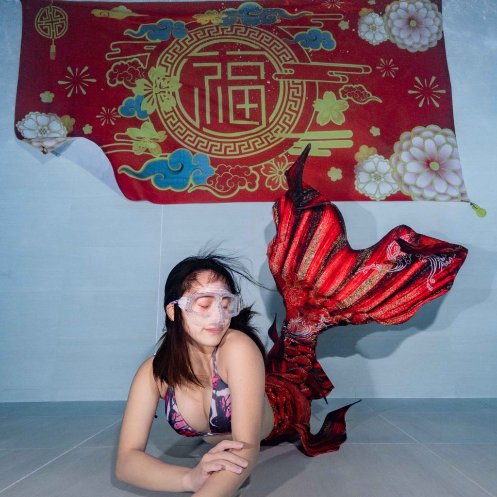 我的人魚歷程一開始其實不太順利,在2019年中就開始找,但可能因為管道不多,那時候透過臉書.IG.網頁搜尋能上到人魚課程只有跑出墾丁的,但實在是太遠,後來過了一年才讓我發現MFI的系統,剛好潛力方又在台中,非常的近!!所以立刻報名上了我的第一堂人魚課程並拿到了MF1!後來很幸運有機會參加了兩次海科館的人魚表演 ,在表演的那一刻發現我真的非常熱愛扮演人魚時候的感受,真的非常享受那個表演的過程,那一刻我是真的很快樂很開心,感覺就是為海洋而生,所以下定決心要來考教練